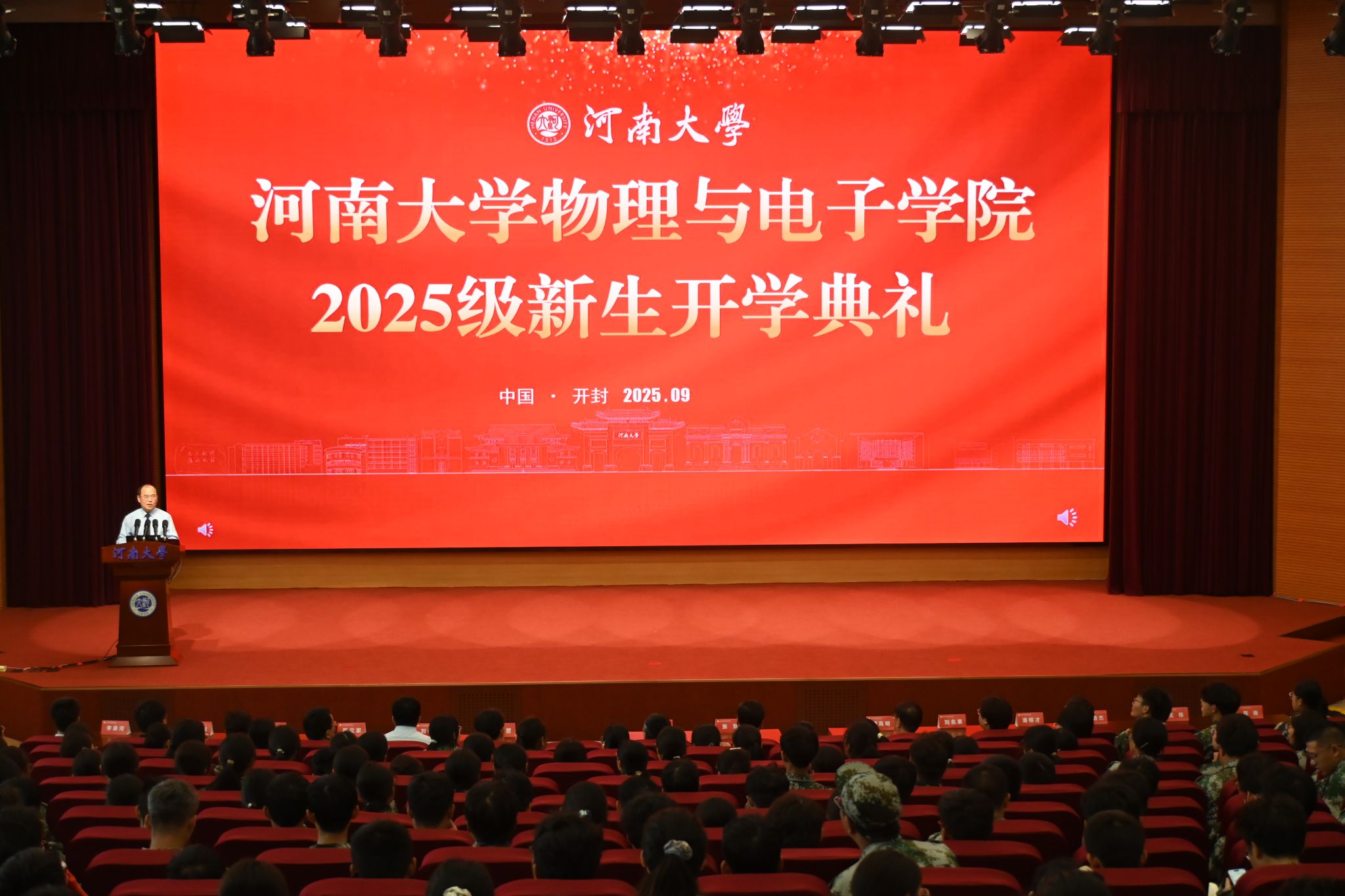 9月14日上午,物理与电子学院2025级新生开学典礼在金明校区图书馆一楼报告厅举行。学院领导班子、各系室主任、教师代表、各年级辅导员与2025级全体本硕博新生齐聚一堂,共同见证这一重要时刻。典礼由学院党委副书记刘寒冰主持。