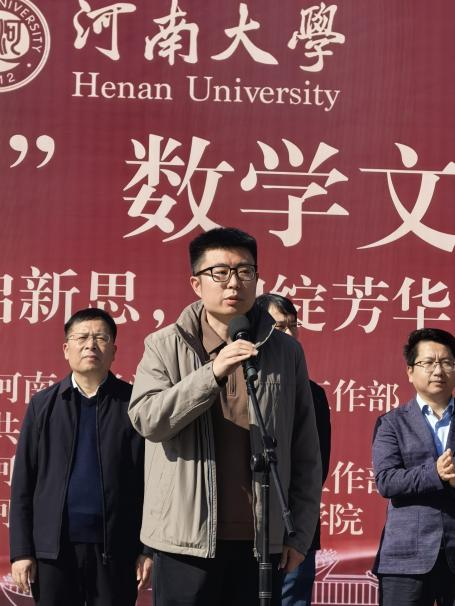 樊小勇在致辞中对数学文化节的开幕表示祝贺,向筹备举办的师生表示感谢。他指出,数学不仅是一门学科,更是一种思维方式,一种文化传承。党的二十大强调要加强基础学科人才培养,数学作为基础学科的重要组成部分,在创新人才培养体系中具有不可替代的作用。他期待看到同学中踊跃参与在各项活动,在数学的海洋中畅游,在思维的碰撞中成长。