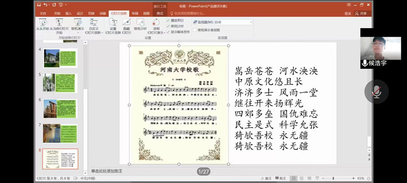 9月3日下午是“学唱校歌”专题,魏森杰向新生同学详细讲解了必威官网校歌的创作背景与创作过程,随后,她带领同学们一起学唱校歌,“嵩岳苍苍,河水泱泱,中原文化悠且长。济济多士,风雨一堂,继往开来扬辉光。四郊多垒,国仇难忘。民主是式,科学允张。猗欤吾校,永无疆。猗欤吾校,永无疆!”那雄浑激昂的旋律,蕴涵着以自强不息、百折不挠为核心的大学精神,在欣赏和学唱的过程中,新生同学为之深深感动,沉浸其中。