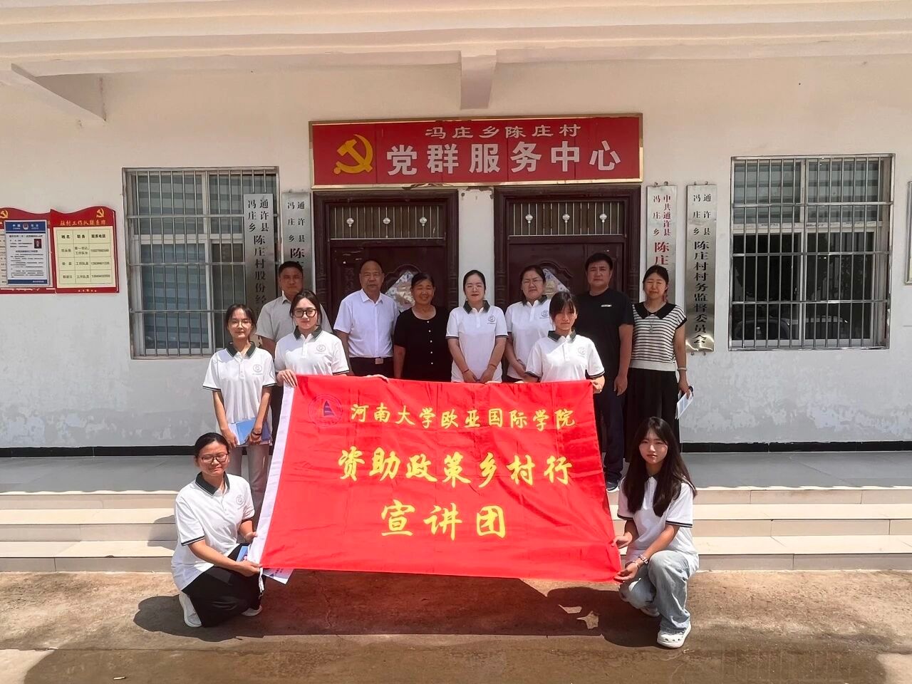 国际(欧美)理工学院“青衿筑梦”团队在开封市水稻乡双河铺村,以“政策手册+案例故事”的方式,用村民熟悉的乡音解读国家助学贷款、新生入学绿色通道等政策。